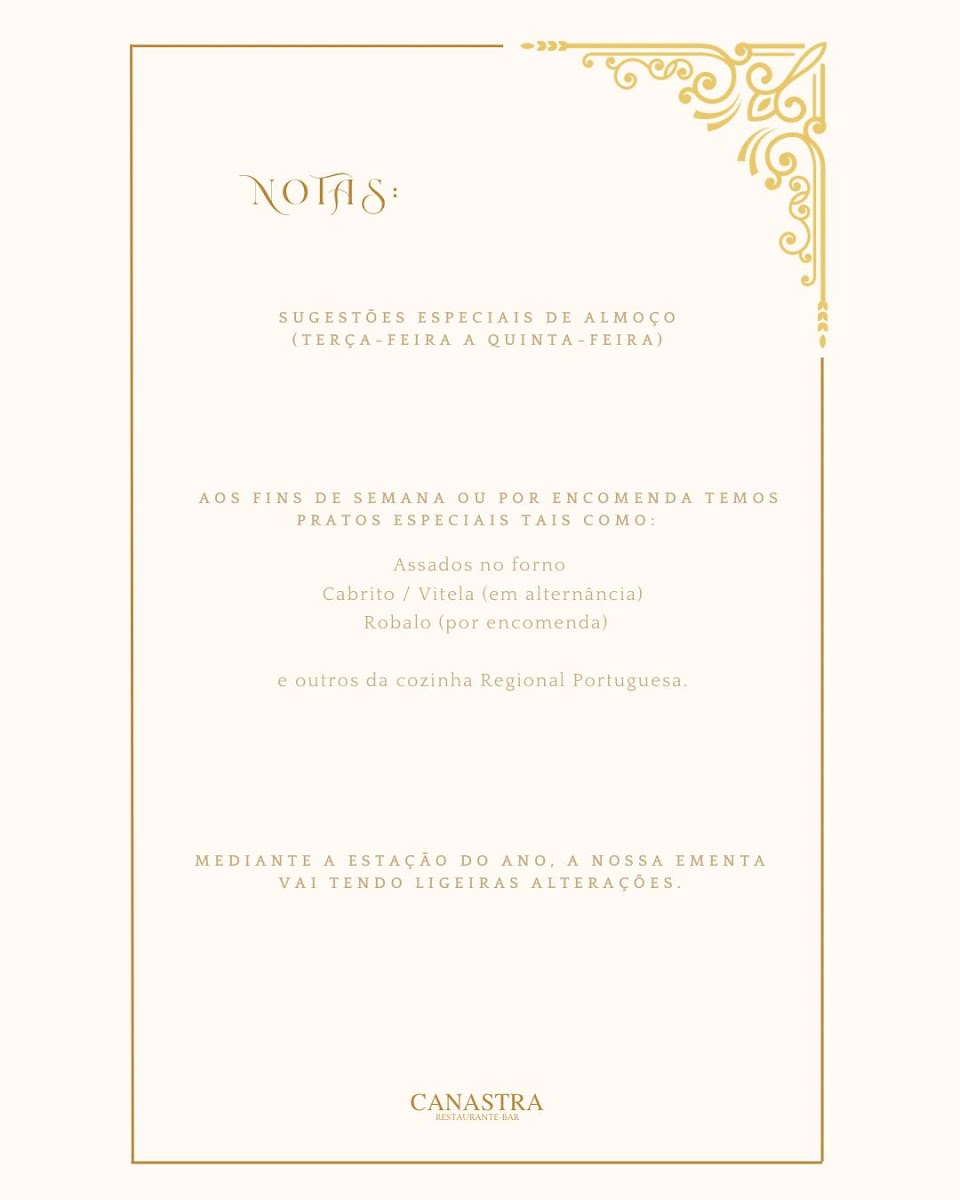 Welcome to Canastra, a culinary gem nestled in the heart of Espinho, Portugal. Located at R. 16 42, this charming restaurant has captivated diners with its exquisite offerings and warm ambiance. With a focus on both seafood and meat dishes, Canastra presents a diverse menu that has garnered rave reviews.